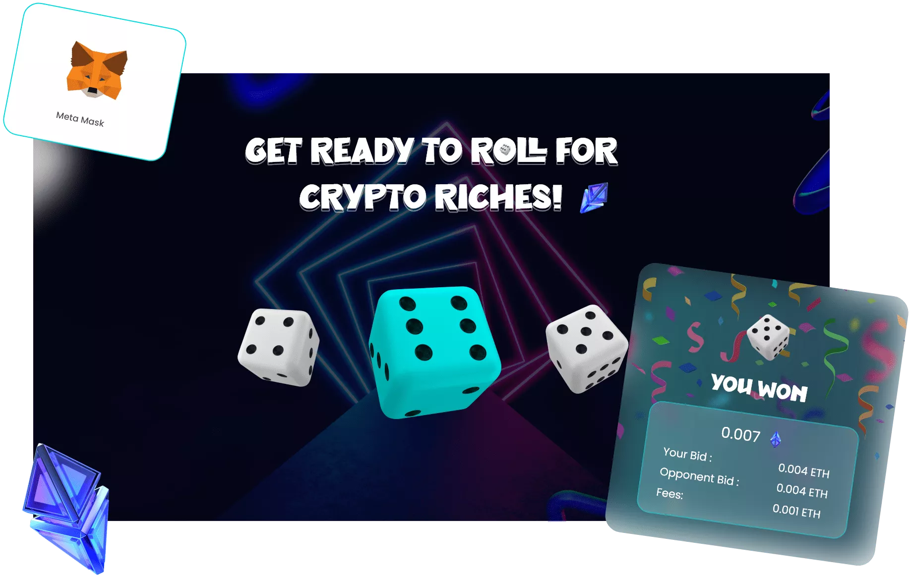 Crypto gaming via Metamask & ETH. Wager against live players & PC bot for instant wins. Single round gameplay offers fast-paced excitement.